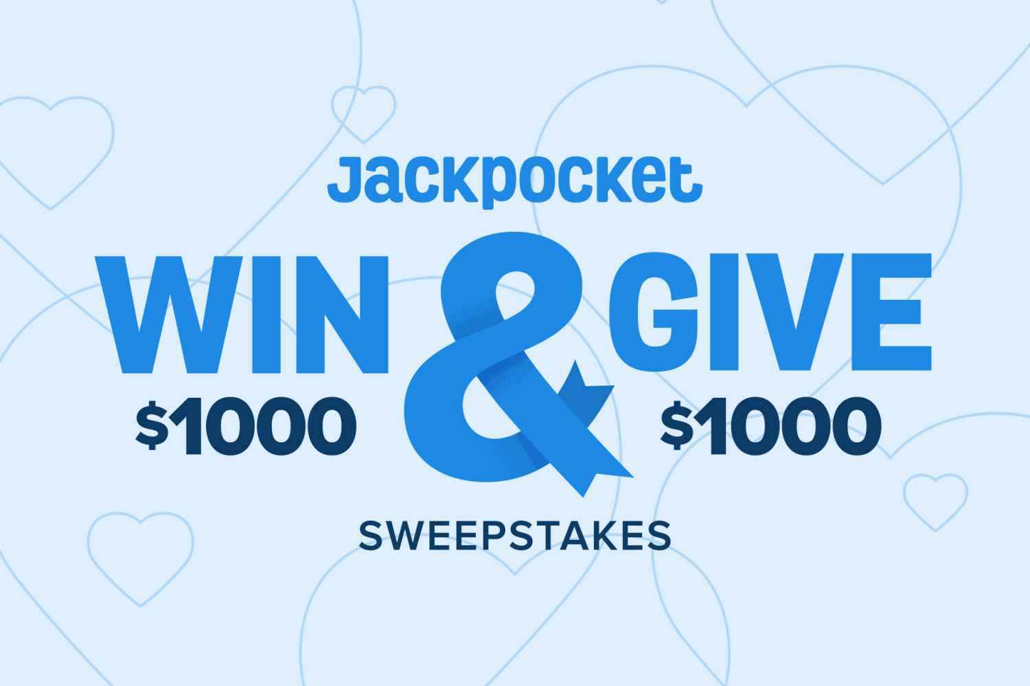 *No purchase necessary. A purchase does not increase your odds of winning. Must be 18 years or older and a resident of Arkansas, Colorado, Minnesota, New Hampshire, New Jersey, New York, Oregon, Ohio, Texas, or Washington DC to enter. Void where prohibited. “Win and Give” Sweepstakes comprises a series of three separate weekly drawings and one entry automatically enters all three weekly drawings depending on when you enter. See Official Rules for details. To enter for free, first, you must download the Jackpocket mobile application and open and register an account and, second, you must fill out the online form at https://jackpocket.typeform.com/to/swGCMPJG with the email address you used to open and register your Jackpocket account. Entries through account creation are subject to the full terms of service at jackpocket.com/tos. If you or someone you know has a gambling problem and wants help, call 1-800-GAMBLER.